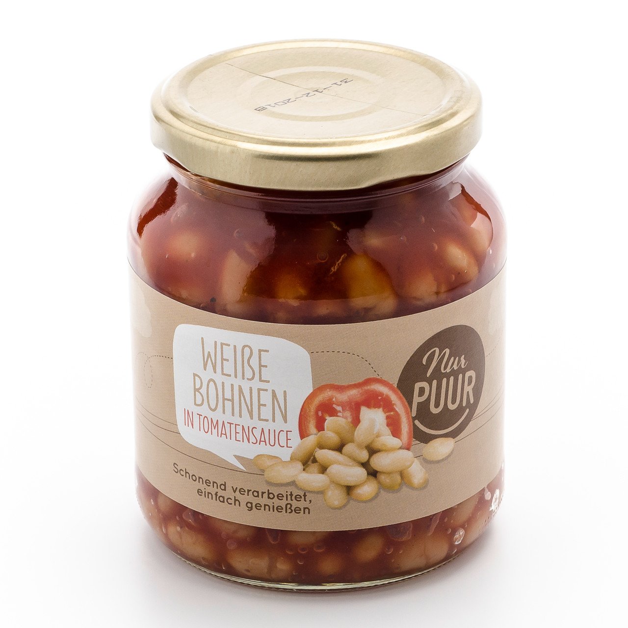 Zutaten: Weisse Bohnen* 50%, Tomaten* (aus Konzentrat) 38%, Wasser, Agavendicksaft*, Meersalz, Zwiebelpulver*, Pfeffer schwarz*, Knoblauch*, Oregano*, Basilikum*