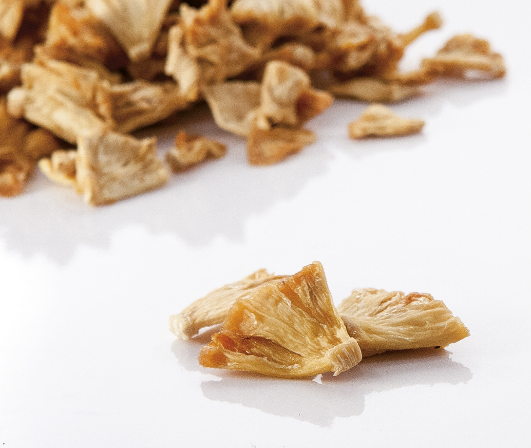 Ananas in Stücke geschnitten und vor Ort schonend getrocknet. Kein Schwefel, kein Zucker. Die getrockneten Ananasstücke schmecken süss und gleichzeitig leicht säuerlich.