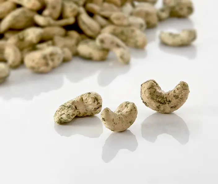 Geröstete Cashewkerne, mit Za’tar gewürzt. Der Za’tar kommt aus Palästina und besteht aus wildem Thymian, Sumach, geröstetem Sesam, Kreuzkümmel und Salz.