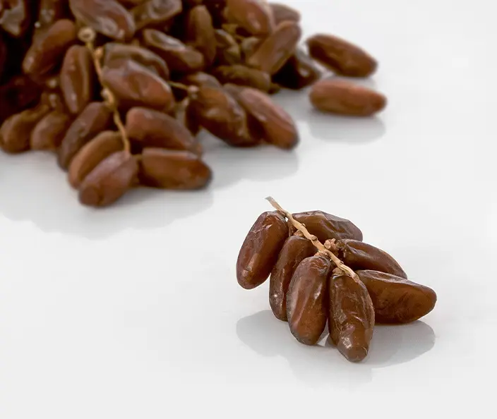 Rispendatteln der Sorte Deglet Nour. Unser Partner South Organic in Kebili beschäftigt überwiegend Frauen, welche die Palmfrüchte sorgfältig in mehreren Durchläufen nach Qualität sortieren. Für uns wählen sie jene Datteln aus, die besonders zart und saftig sind.